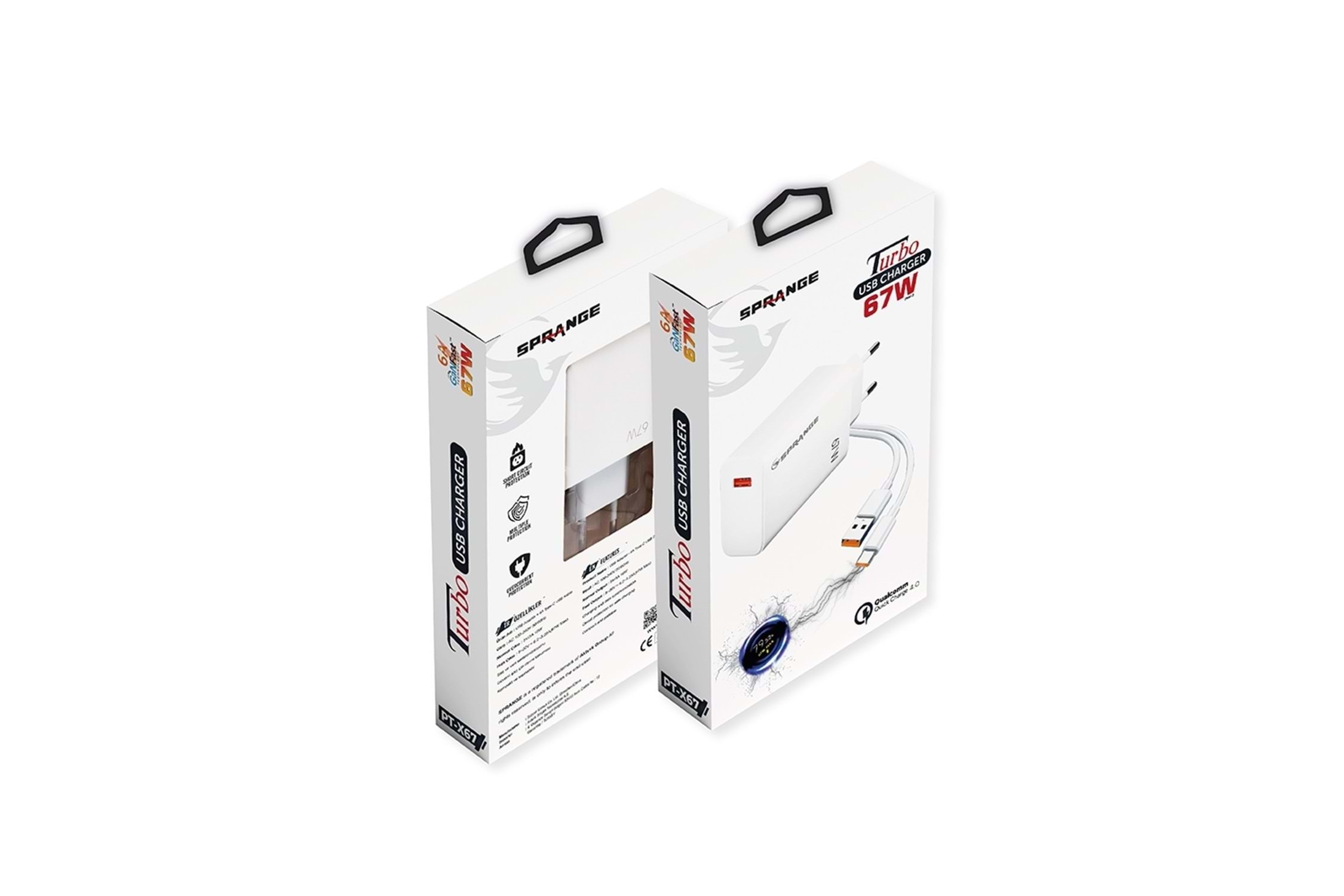 SPRANGE PT-X67 67W Turbo USB Şarj USB-C Data & Şarj Kablo