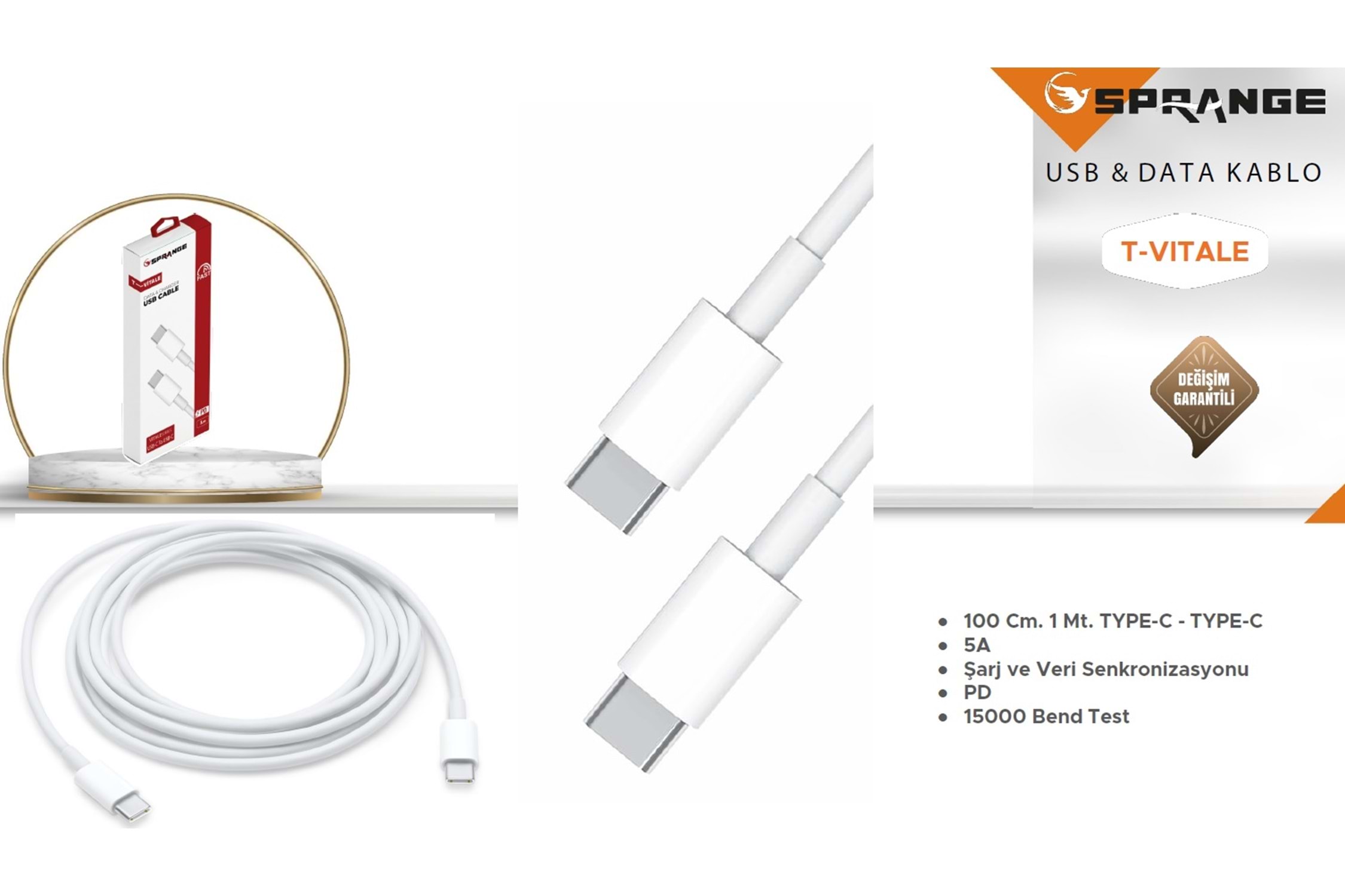 SPRANGE STPD TYPE-C TO TYPE-C KABLO 5A 1M T-VİTALE VITALE