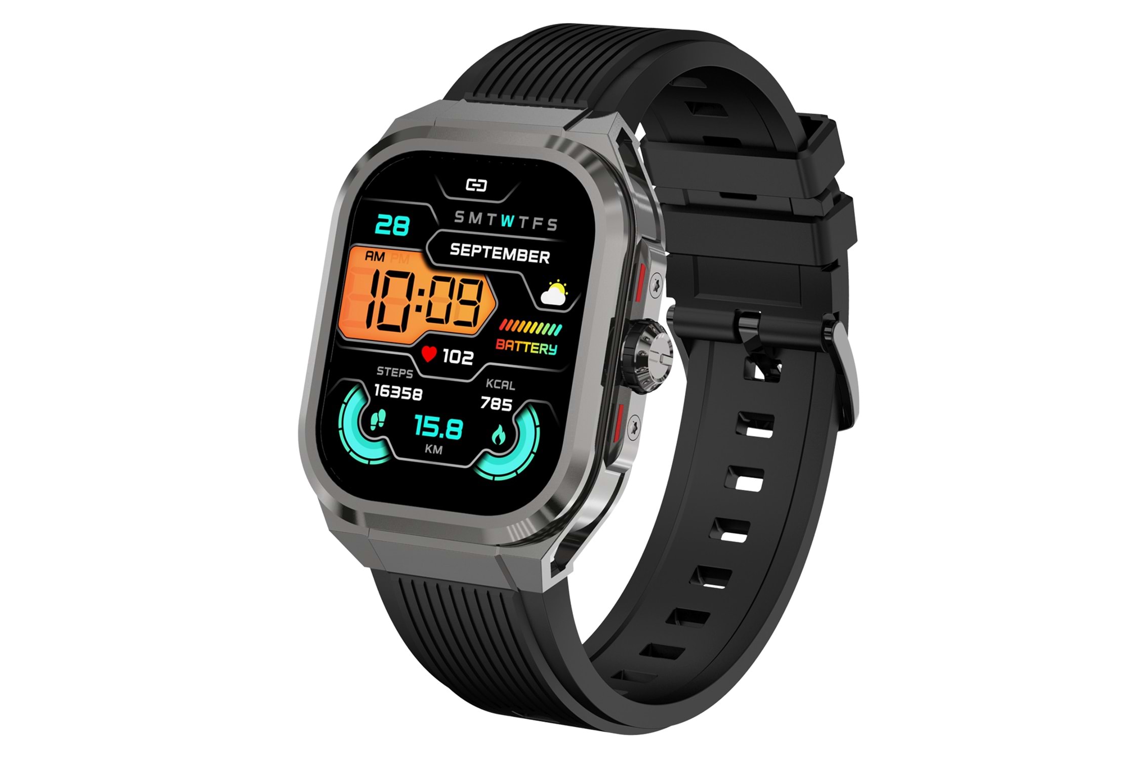 S-link Glowy W30 DaFit Uyumlu+ Bluetooth 1.96 Amodel Ekran 500mAh Batarya Siyah Akıllı Saat/ Smart Watch