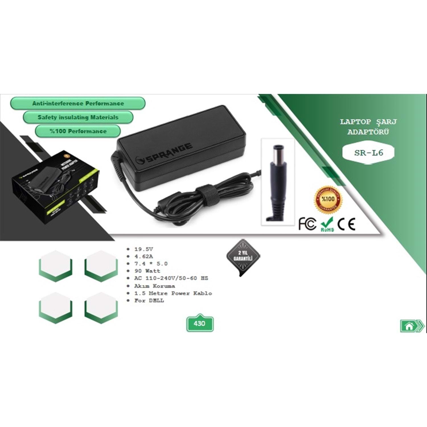 DELL 19.5V-4.74A 7.4*5.0 90W DELL KALIN SPRANGE SR-L6