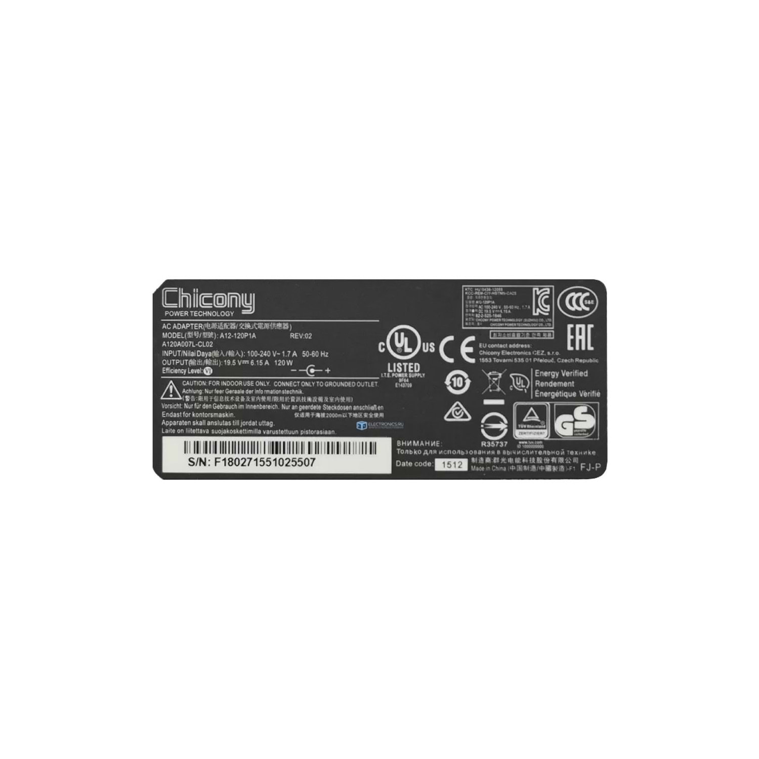CHICONY 19.5V 6.15A 120W 5.5*2.5 ORIGINAL GAMING ADAPTOR