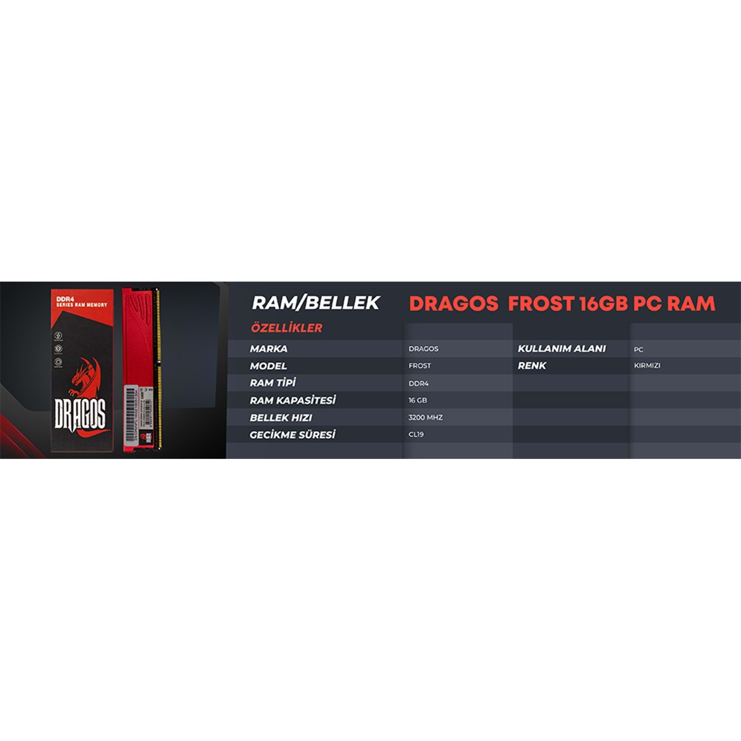 DRAGOS FROST 16GB DDR4 3200MHZ PC RAM SOĞUTUCULU