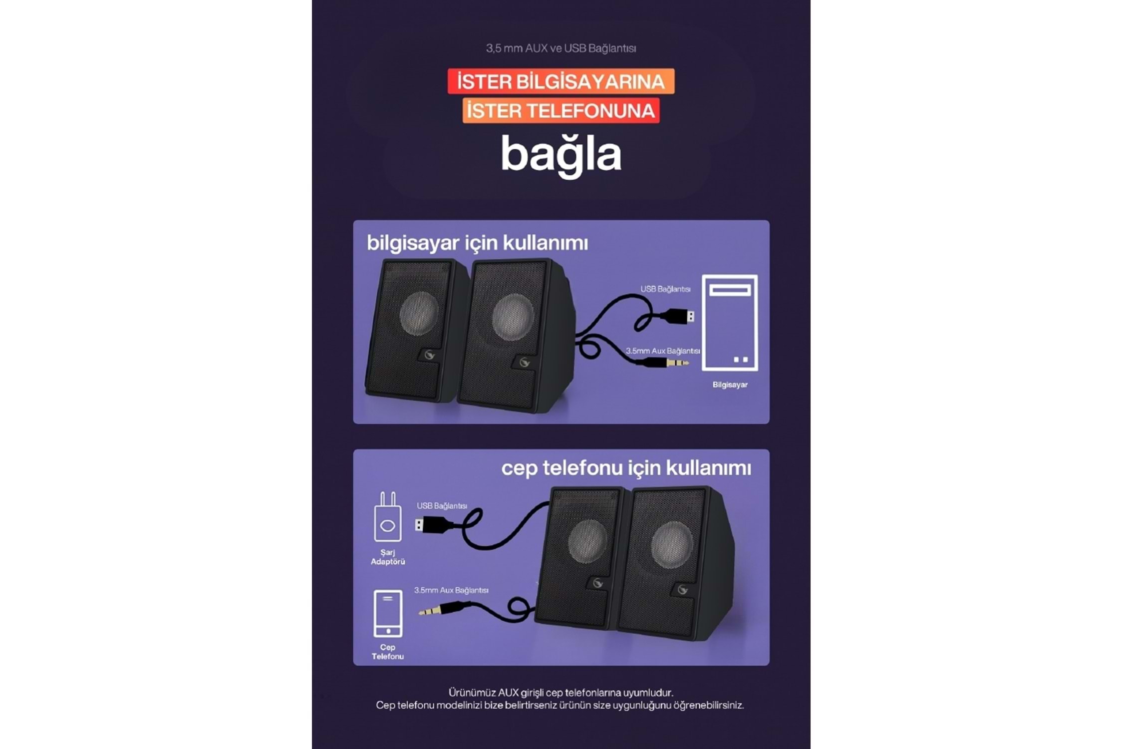 Sprange SR-PN784 2.0 3W*2 USB + 3.5mm USB 5V Hoparlör Siyah